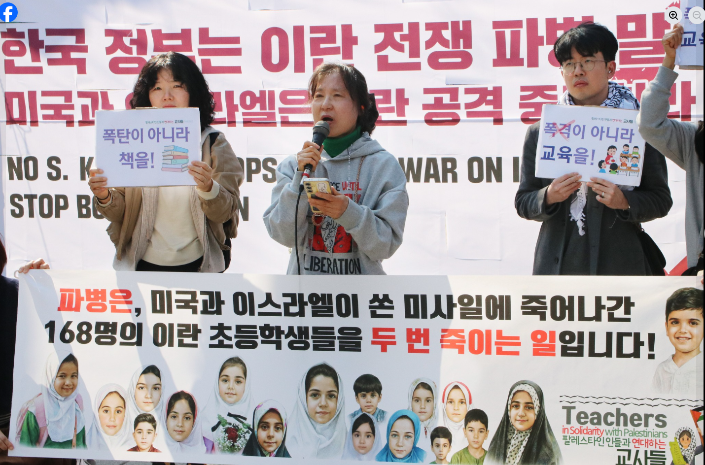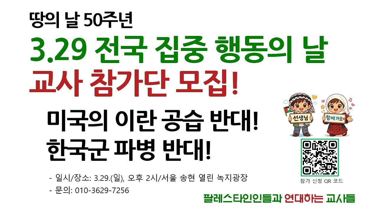 이미 미국과 이스라엘이 민간인을 폭격하는 이 전쟁에 한국군이 파병된다는 것은 바로 우리의 제자들을 전쟁 범죄에 가담시키는 것이
