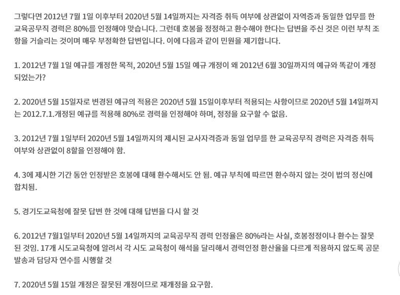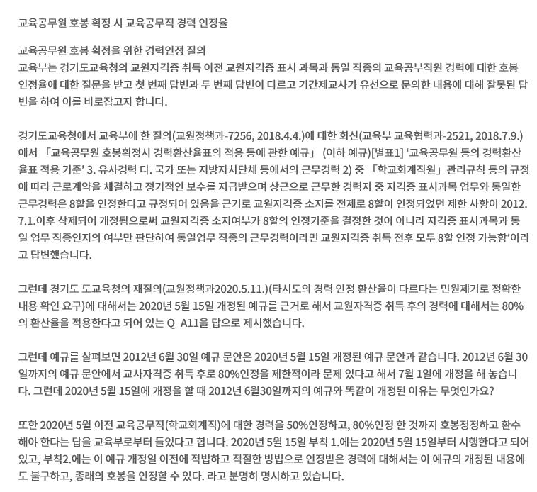 그런데 며칠 전 교육공무직에 경력에 대한 좀 이해가 안 되는 교육부의 답변이라서 제가 살펴보았습니다.