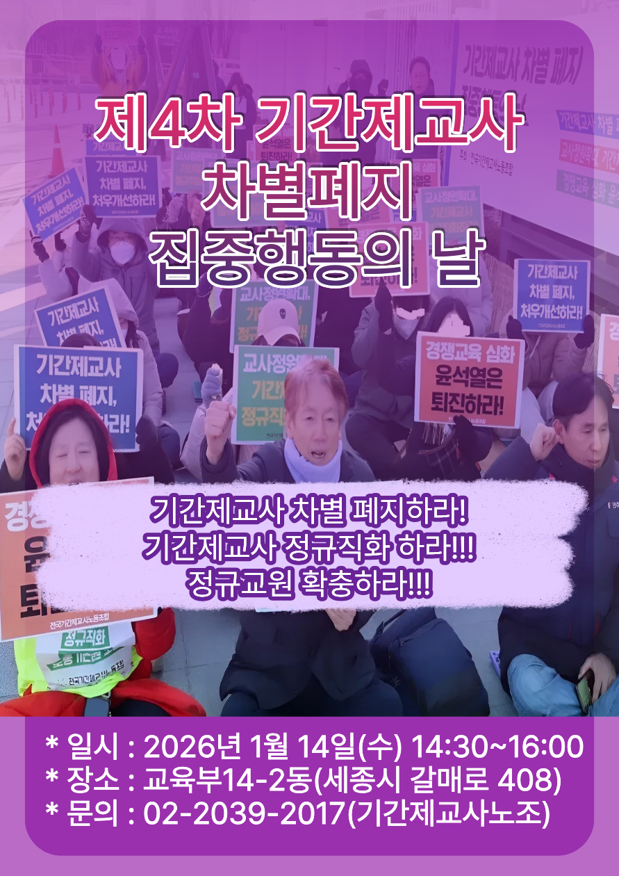 1월 14일(수) 오후 2시 30분 교육부 앞으로 모입시다.