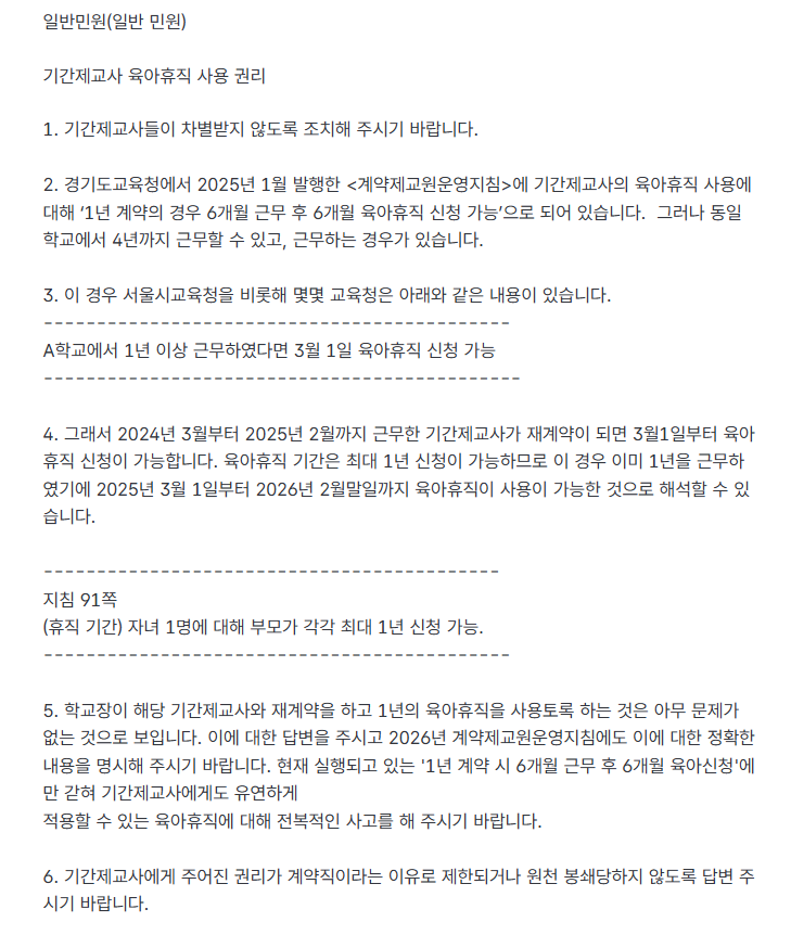 젊은 기간제교사들이 많이 늘어나고 있고, 육아휴직을 제대로 사용할 수 있도록 조치하기 위함입니다.