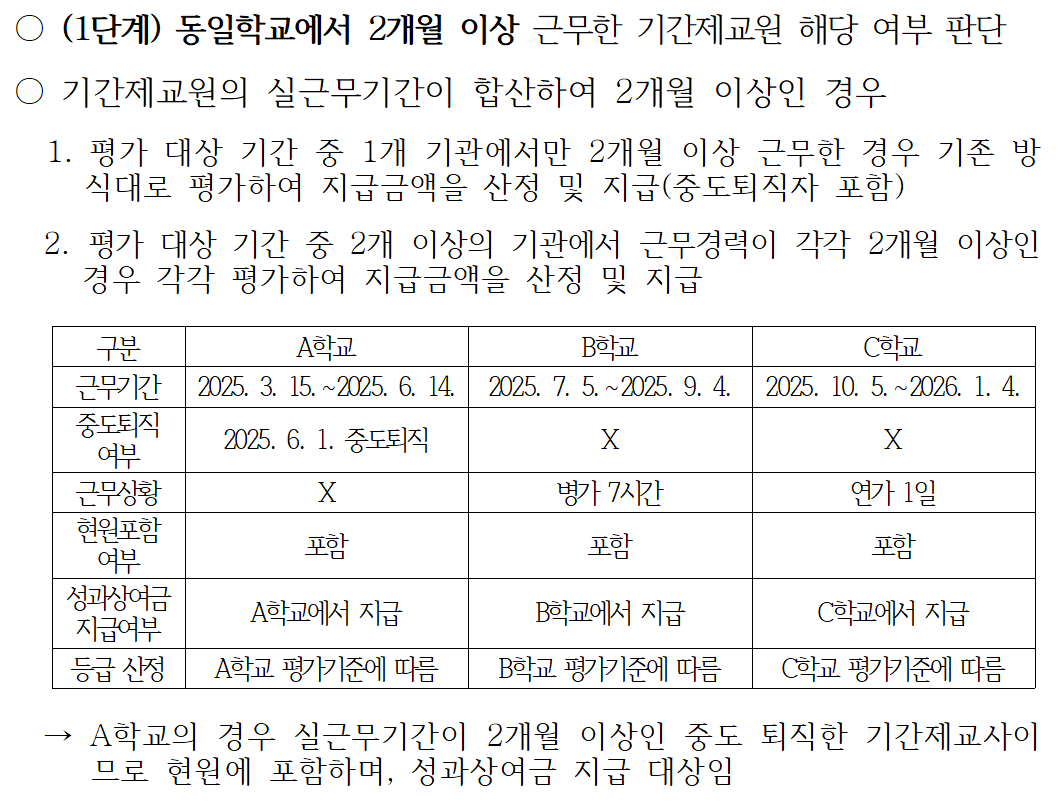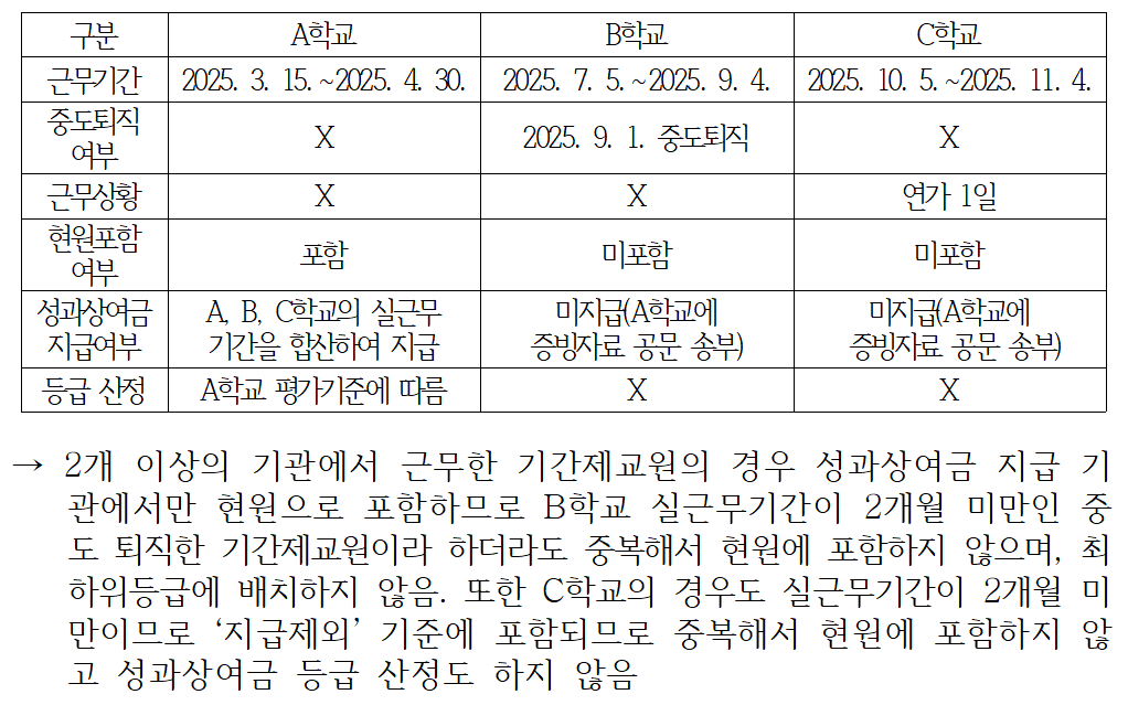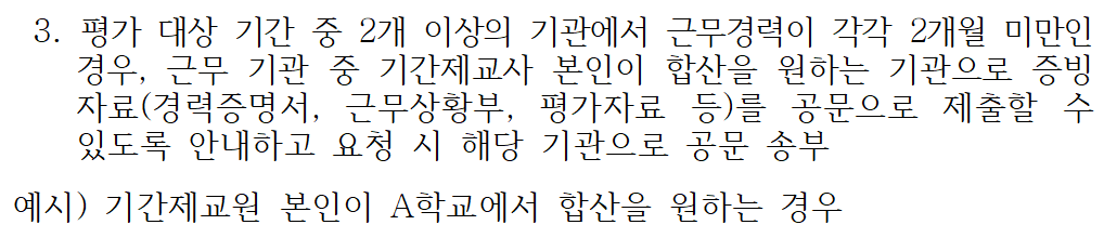 몇 년 전부터 한 학교에서 한 달 근무하고 또 다른 학교에서 한 달 근무한 경우 두 학교 근무 기간을 합해 두 달이상이 되면
