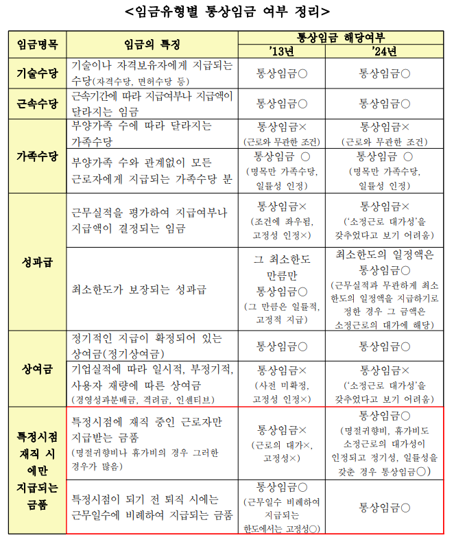 2024년 12월 9일부터 적용된 통상임금 관련 내용입니다.