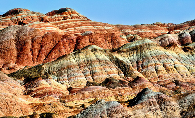 세계의 명소와 풍물 감숙성 하서주랑 중부에 위치하는 오랜 역사의 장액에는 무지개가 땅으로 내려온 듯 황토산에 색색의 물감을 채색한 듯 인간의 상상력을 초월하는 비현실적인 풍경이 있다. 대지의 색채예술로 불리우는 중국 간쑤성의 장액시의 칠채산(七彩山)이 바로 그 주인공이다. 칠채산의 공식 이름은 장액단하국가지질공원으로 단하는 붉은 노을을 뜻한다. |