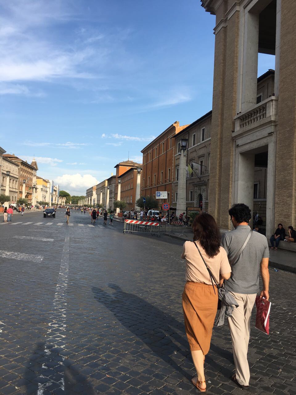 이제 바티칸쪽의 큰 도로로 나가 택시를 부르기로 한다.