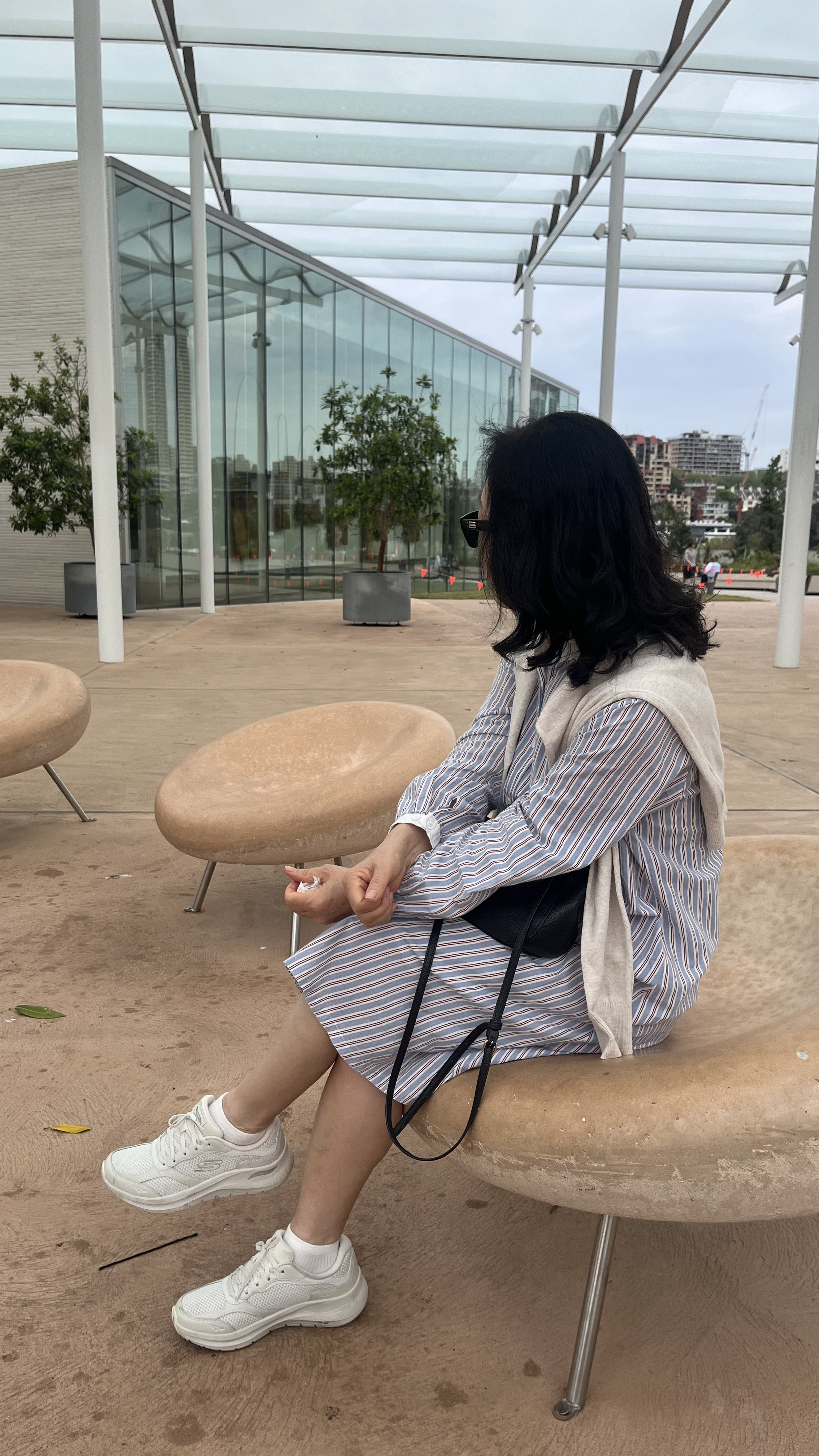 그림을 감상하다가 잠시 앉아 쉬면서 창을 바라보면