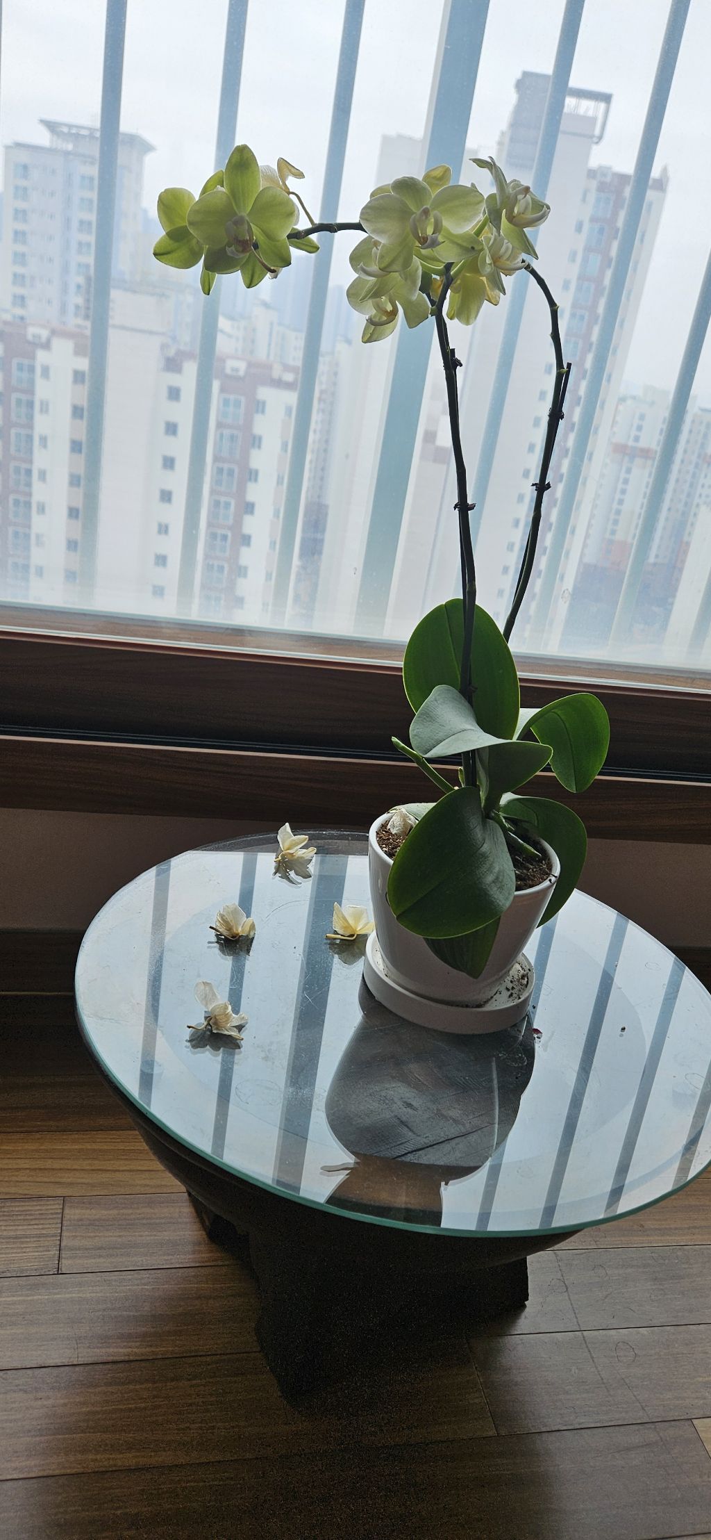 11월 초에 데려온 난이 이제 꽃잎을 툭툭 떨군다