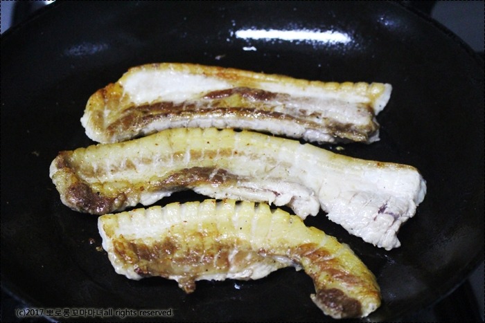 삼겹살은 앞뒤로 노릇하게 구워주세요.
