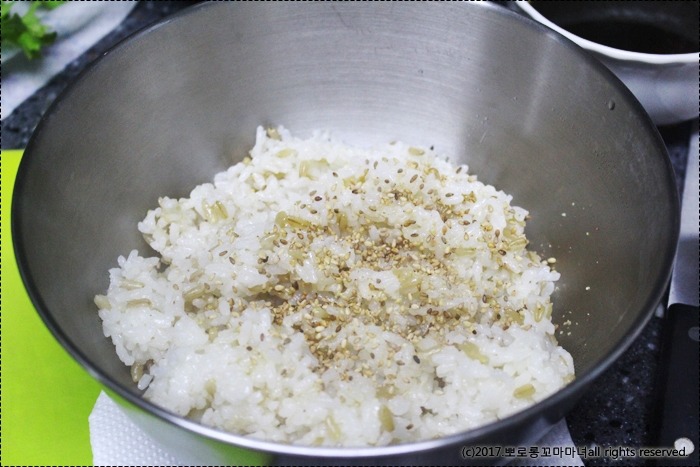그냥 고소한 맛 나라고..참기름 약간에 깨뿌리면 좋아요.
