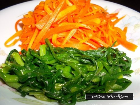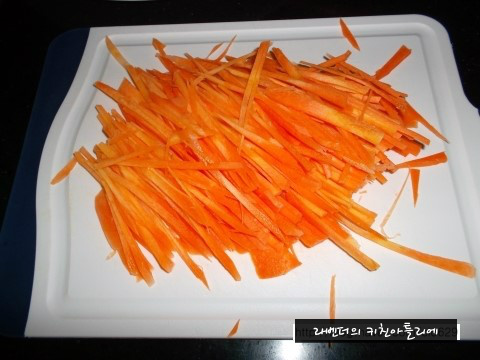 당근 1개 채쳐 소금 약간 넣어 볶아두구요~