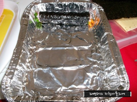 아주 오래전에 사서 마구 구겨진 마지막 남은 은박도시락 잘 펴서 담구요 ㅋ