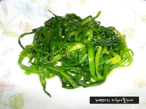 부추 살짝 데쳐 썰어 소금,참기름,깨 넣어 조물조물 해두구요~