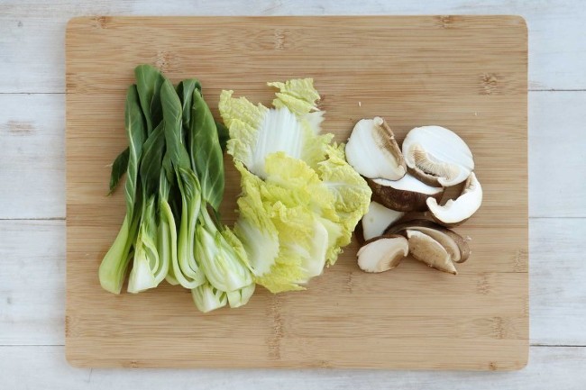 3. 청경채는 길게 4등분하고, 배추는 사선으로 편썬다.