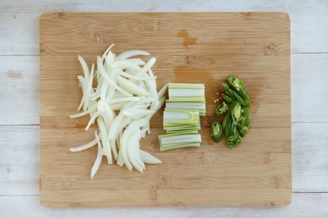 4. 양파는 채썰고 대파는 3cm 길이로 2등분 하고