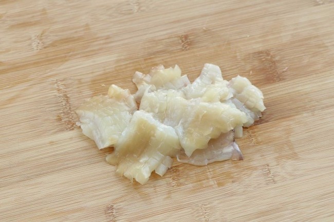 2. 오징어는 껍질을 벗기고 칼집을 낸 다음 적당한 크기로 썬다.