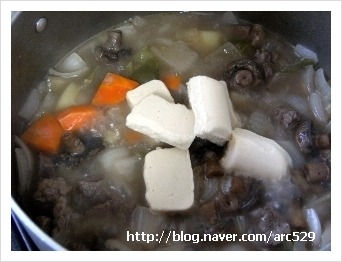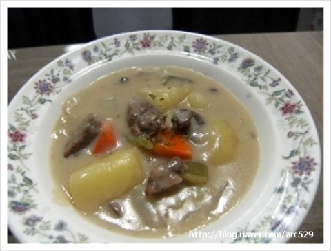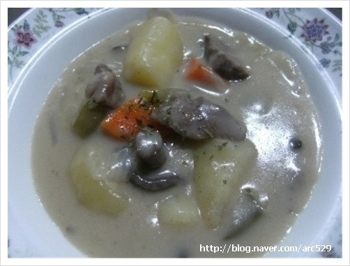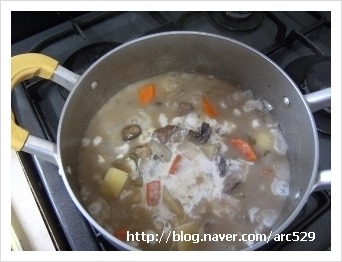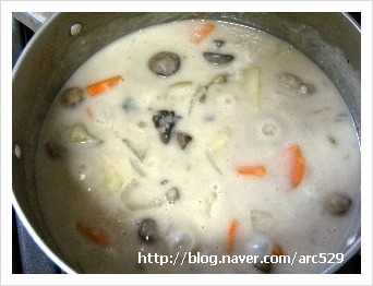 고형 크림을 넣고 잠시 더 끓이고, 우유 100ml 를 넣고 3~5분 끓여주면 끝!!