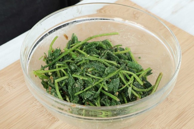 4. 데친 취나물에 양념을 넣고 조물조물 무친다.