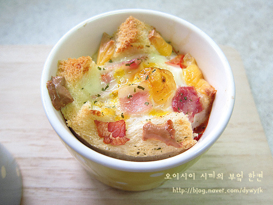 식빵에 달걀 하나 퐁당~~ 빠뜨려서 맛나게 구웠답니다.