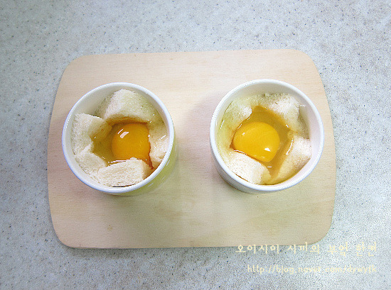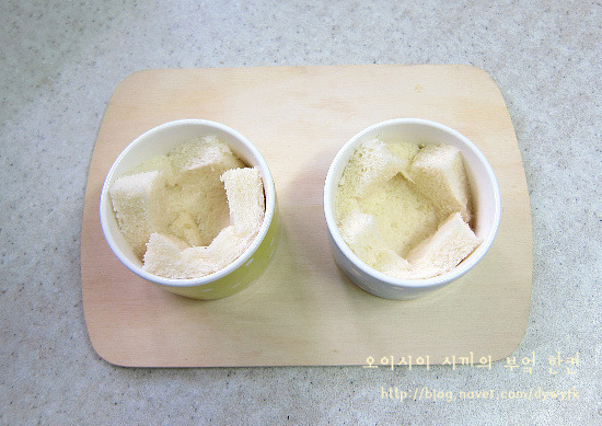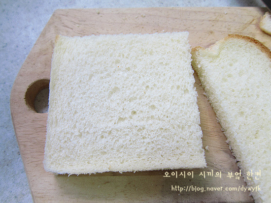 식빵은 용기에 맞게 사각으로 잘라줍니다.