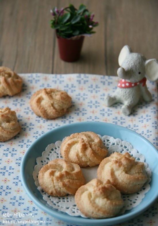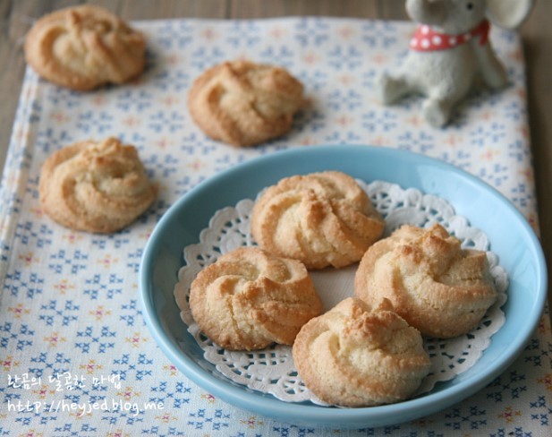 4. 짤주머니에 1cm 별모양 깍지를 끼우고 반죽을 담아 동그라미를 그리듯 짜주세요