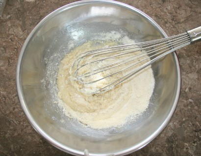 2. 아몬드가루와 슈가파우더를 체쳐서 넣고 섞어주세요