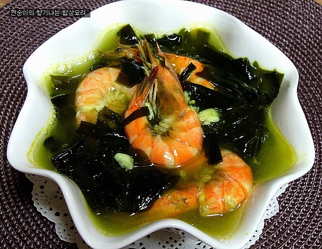 그래서 준비한 시원하고 고소하고 맛있는 새우가 통채로 들어간 새우미역국이네요