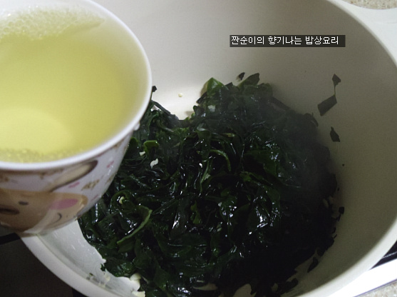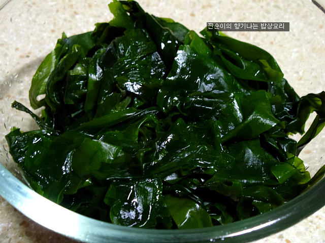 미역은 물에 불려 바락바락 주물러 주어 깨끗하게 씻어주구요