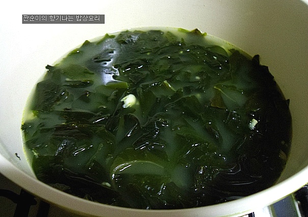 미역국은 약한 불에 약간 오랫동안 끓여내어야