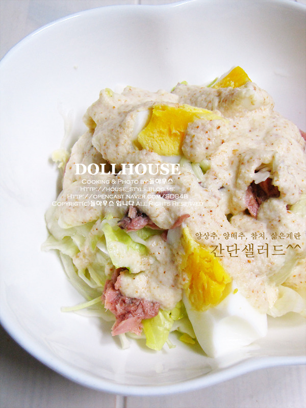 양상추, 양배추, 삶은계란, 참치, 양파...