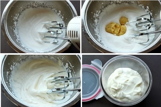 생크림에 설탕을 넣고 거품을 내 준 후 커스터드 크림을 섞어