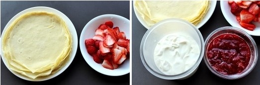* 크레페, 크림, 딸기, 딸기시럽 준비됐어요