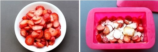 딸기를 씻어 이번에는 슬라이스를 해서 실리콘찜기에 넣고