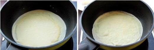 반죽이 흐르듯이 묽게 되어야 팬에서 빠르게 둘러가며