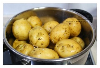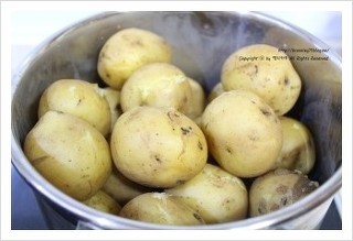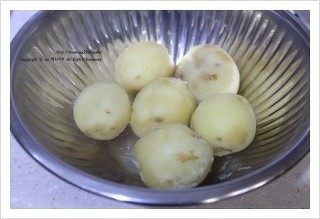 삶아진 감자는 뜨거울때 껍질을 벗기고..