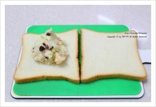 삶은 감자 6개, 건포도 3큰술, 당근조금, 마요네즈 3큰술, 소금조금 식빵... |