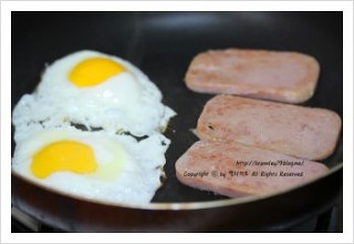 우선 스팸은 노릇하게 구워주시고 계란도 후라이 해주세요..