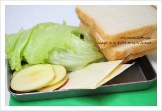 식빵 5장, 계란 2개, 스팸 4조각, 치즈 2장, 양상추조금, 사과조금.. 마요네즈, 크림치즈조금.. |