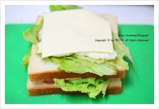 치즈를 올리신후 마요네즈를 얇게 바른 식빵을 올려서 지긋이 눌러주시면 완성입니다..