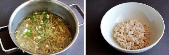 콩나물국: 멸치 다시물 2컵, 파송송 약간, 국간장 약간