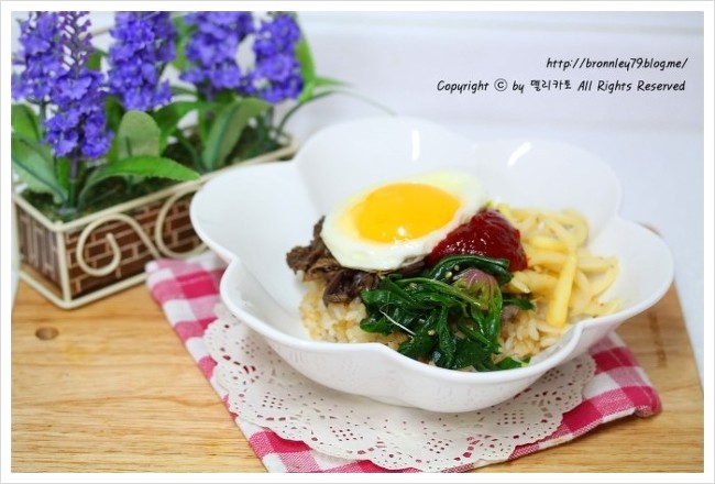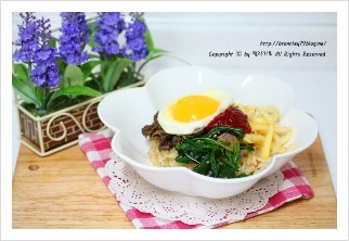 고추장 0.5큰술, 참기름 조금 넣은뒤 계란후라이만 올려주시면 완성입니다...^^