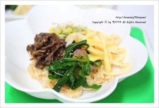 그릇에 담은 뒤 나물을 조금씩 올려주고..