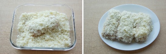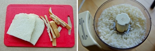 빵가루 : 식빵 가장 자리를 잘라내고 속만 커터기에 약간 굵고 거칠게 갈아 만든다