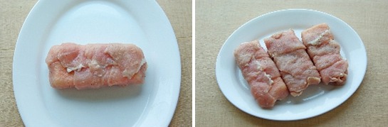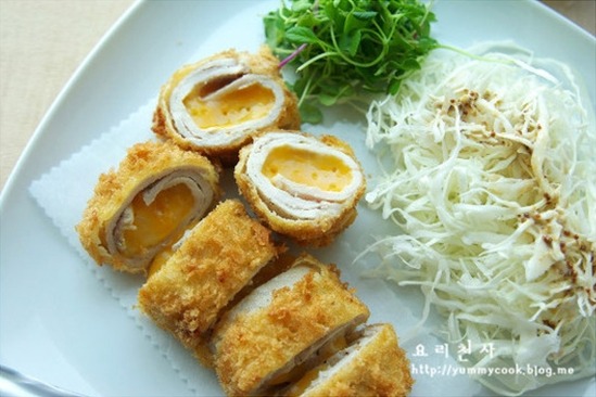 돼지고기로 치즈를 말아 골고루 감싸준다