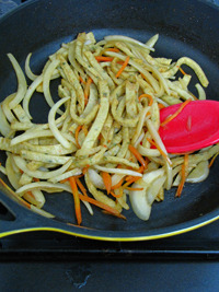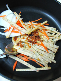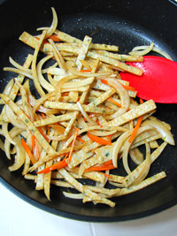 그런다음... 팬에 들기름 1스푼을 두른후... 재료를 볶아줍니다... (센불에서 살짝만 볶아주셔두 된답니다..)