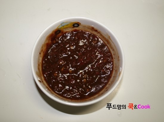 양념장: 두반장 2큰술, 굴소스 1큰술, 맛술 2큰술, 고추장 1/2큰술, 고춧가루 1/2큰술, 설탕 1작은술, 후춧가루