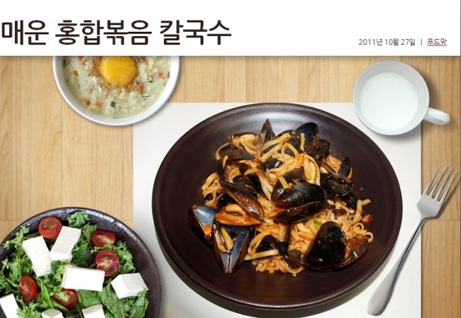 매운 파스타로 만들어 볼까 하다가 흔한것 같기도 하고해서 칼국수로 시도해봤어요.