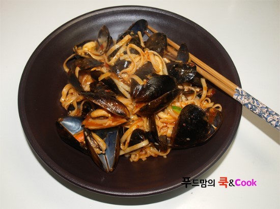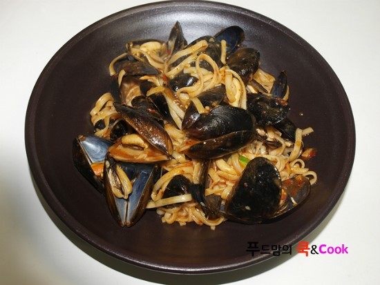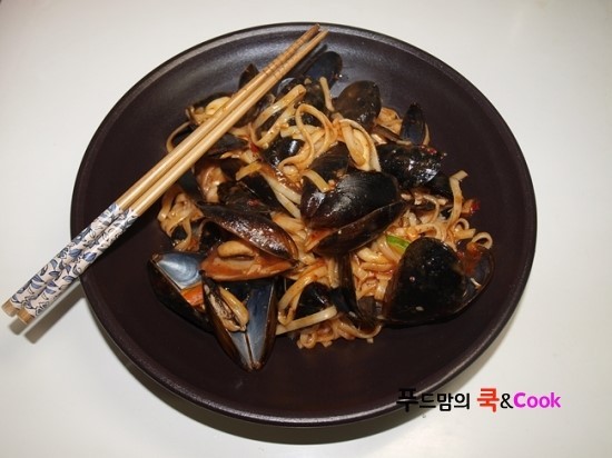 홍합을 넣고 볶아 주시면 맛있는 홍합 볶음칼국수만들기 끝입니다.