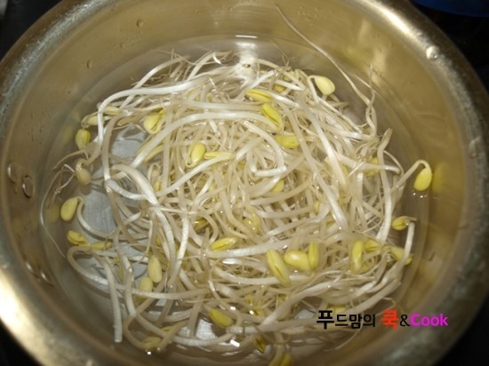 콩나물은 뚜껑을 덮고 소금간 살짝한다음 비린내가 안 올라올때까지 삶아 주세요.