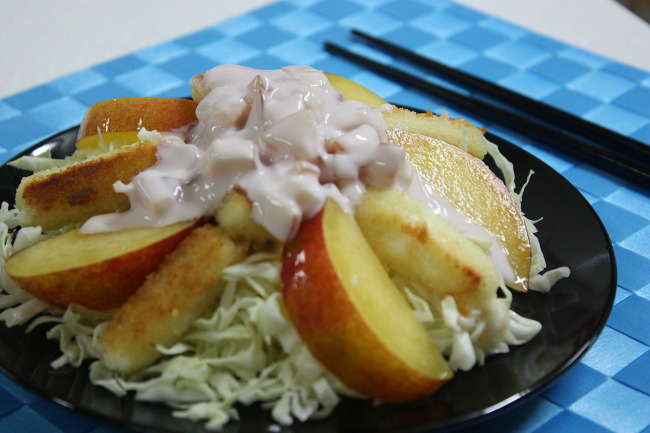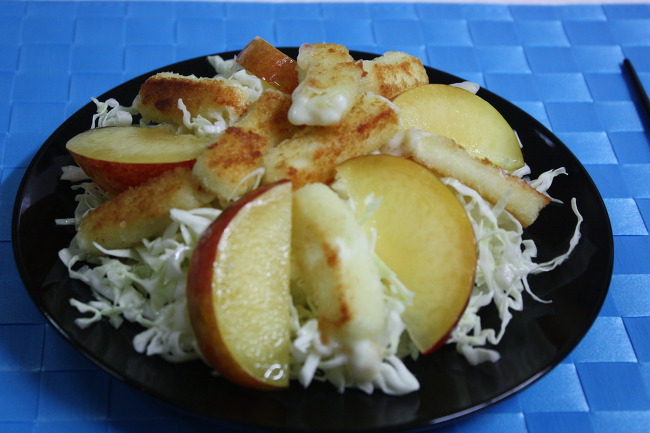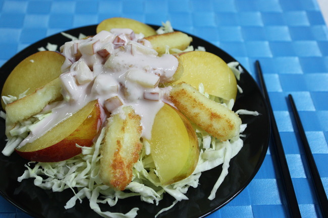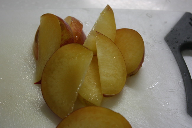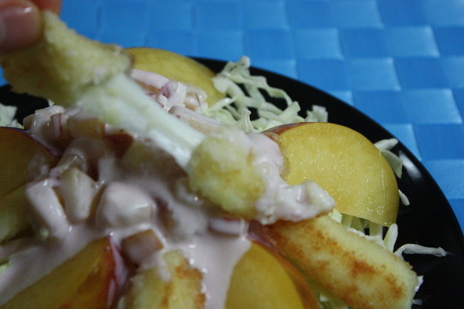 자두는 먹기좋게 자르고 치즈스틱도 구워 주세요.