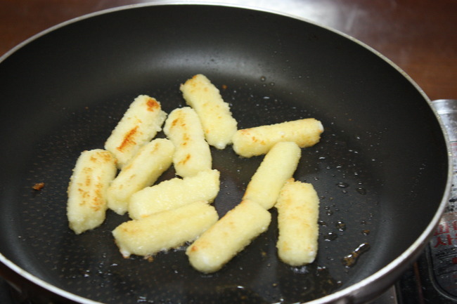 치즈스틱 있길래 살짝 구워 함께 올려 주었어요.
