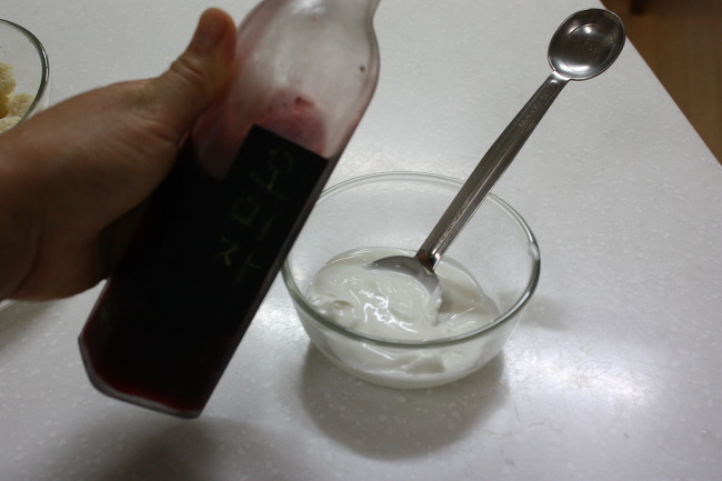 플레인 요구르트에 오지자청.. 2T만 넣어줘도 맛 나는 소스가 완성 되었어요.